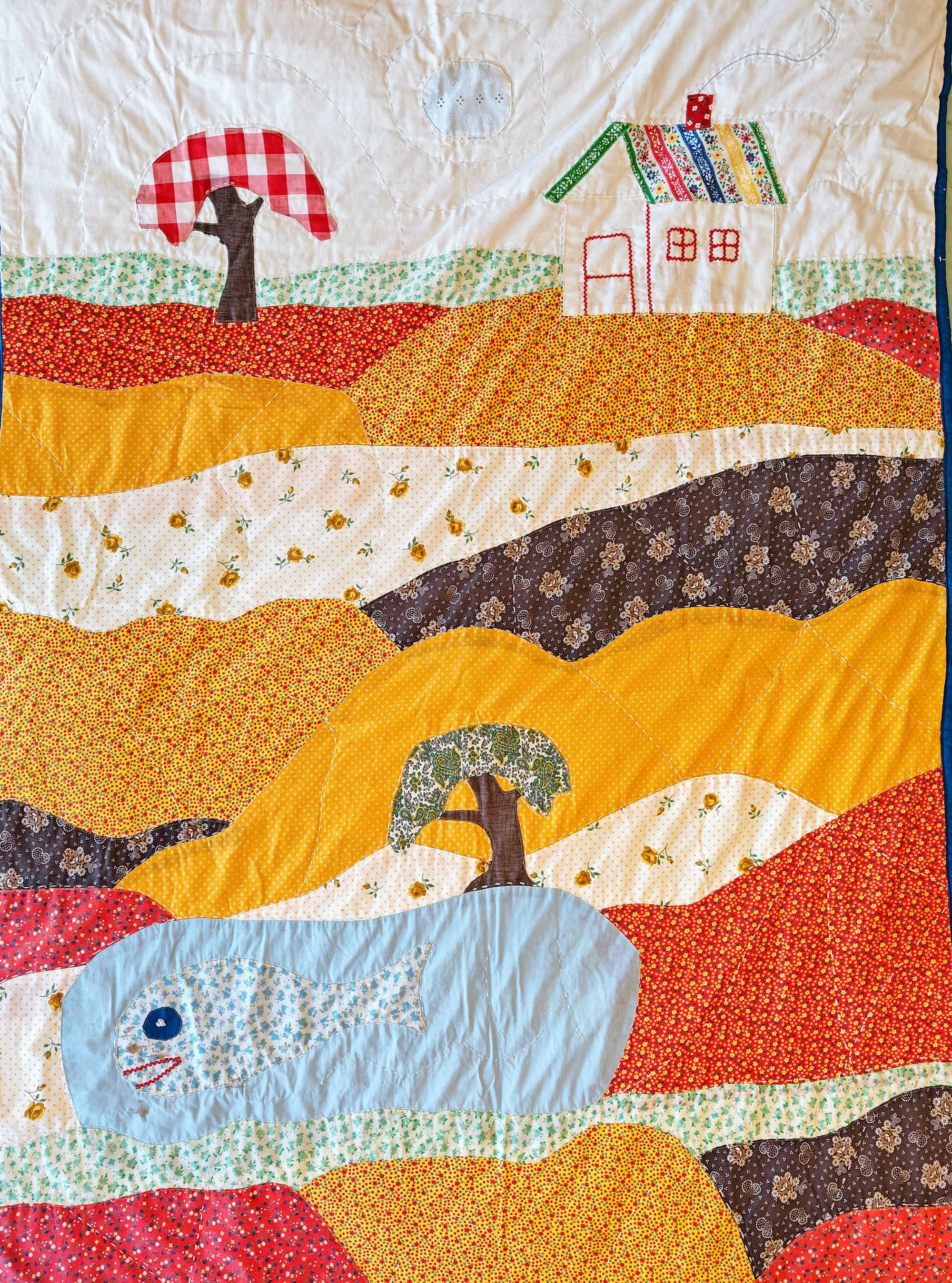 Notes: When I was three years old, the fish on this quilt bit me. I was jumping on the bed.